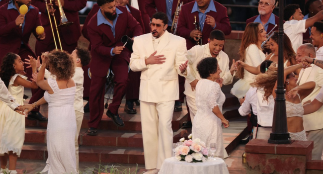 Overall the halftime show by Bad Bunny, the Puerto Rican superstar who became the first ever halftime show headliner to sing only in Spanish, averaged 128.2 million viewers.